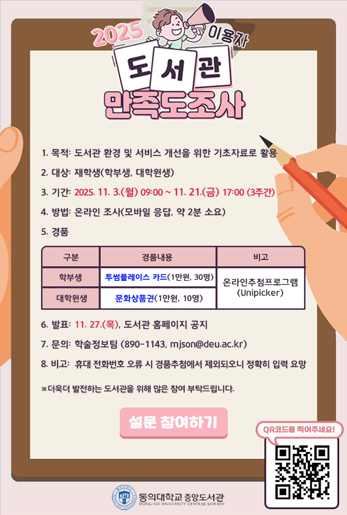 [안내] 2025년 '도서관 이용자 만족도 조사'