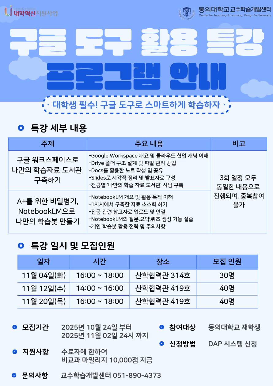 라. 문의: 교수학습개발센터 (☎051-890-4373)