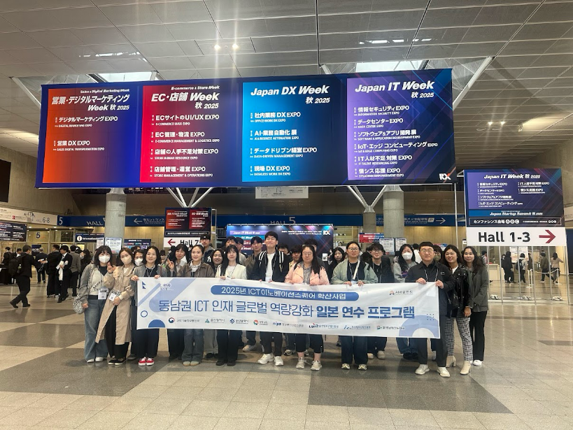 동의대학교 컴퓨터소프트웨어학과 4학년 심O훈 학생이 정보통신산업진흥원 주최, 부산정보산업진흥원 주관으로 운영하는 ‘2025 동남권 ICT 인재 일본 연수’ 프로그램에 참가해 일본 도쿄에서 글로벌 ICT 산업 현장을 체험했다.