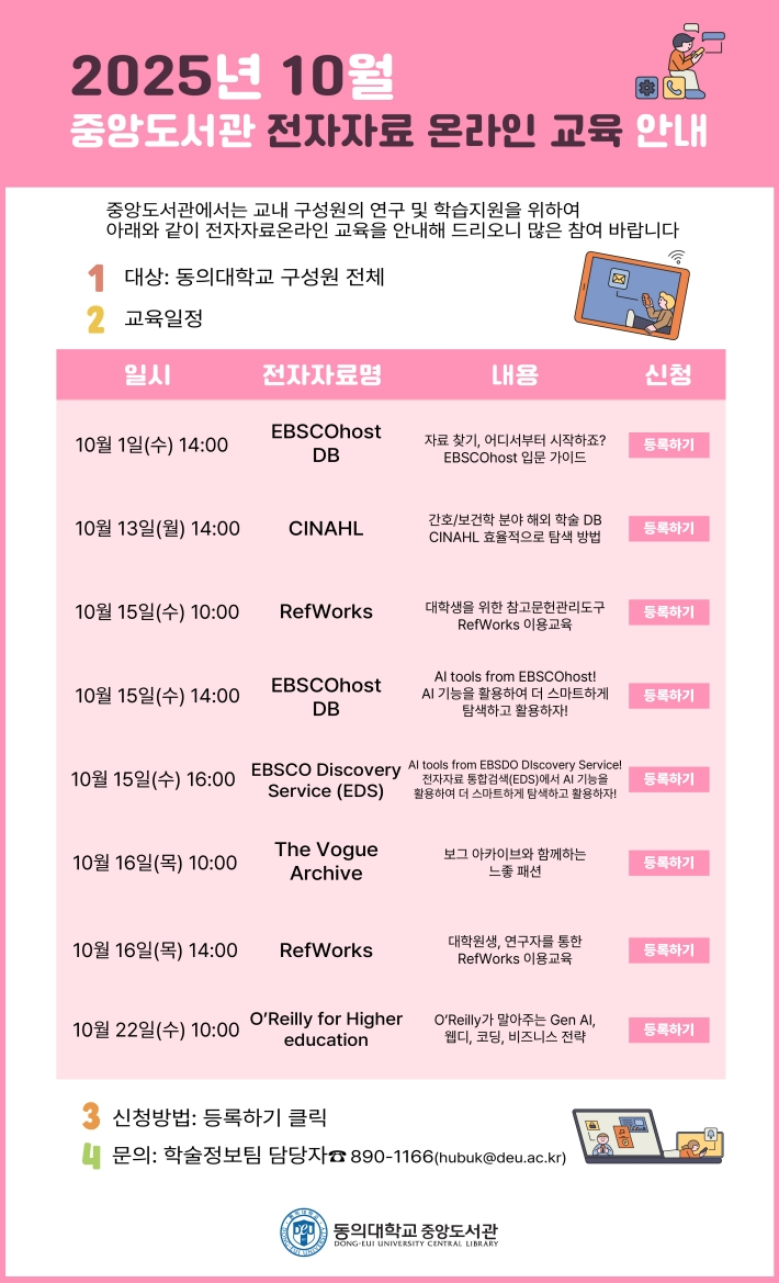 [ 2025년 10월 중앙도서관 전자자료 온라인 교육 안내 ]