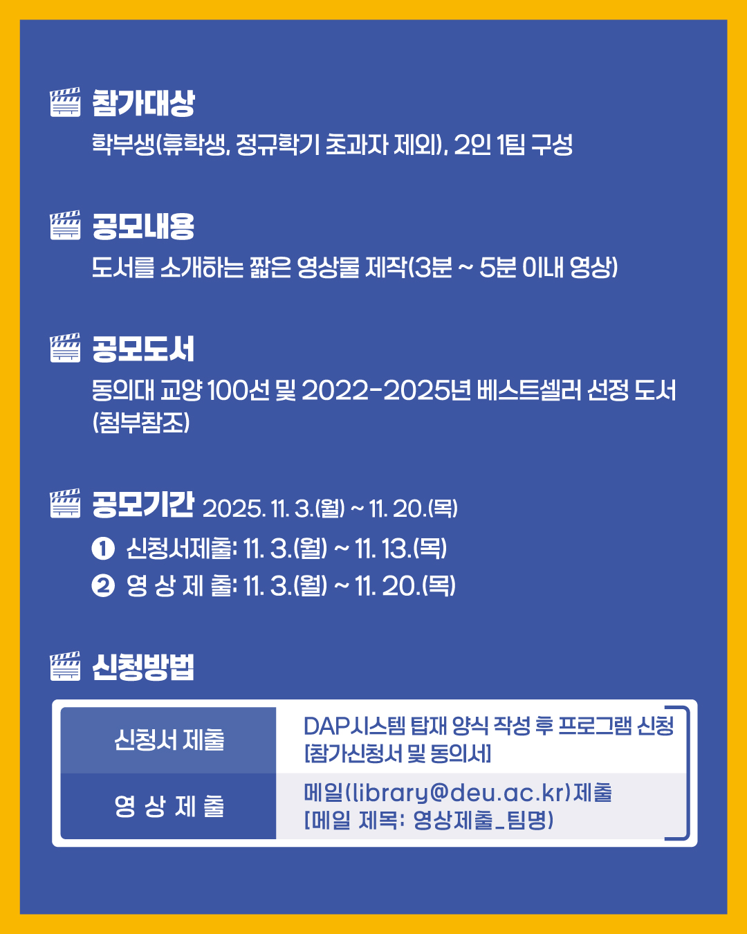 [[대학혁신지원사업] 중앙도서관 '영상 공모전' 프로그램 모집 안내]